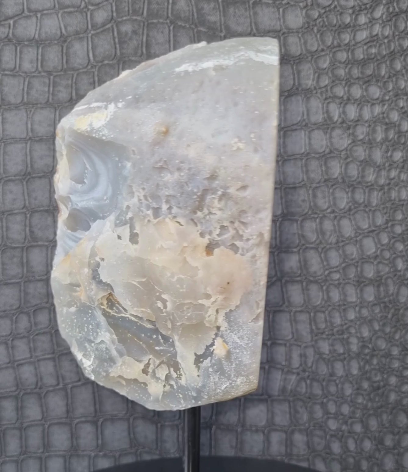 Verrijk je interieur met de rustgevende kracht van agaat op standaard. Deze prachtige woonaccessoires van natuursteen brengen balans en bescherming in je ruimte. Agaat staat bekend om zijn kalmerende en aardende werking, wat helpt om negatieve energie af te weren en innerlijke rust te bevorderen. Elke steen is uniek. Perfect om een persoonlijke en harmonieuze sfeer te creëren in jouw woonkamer, slaapkamer of kantoor.
