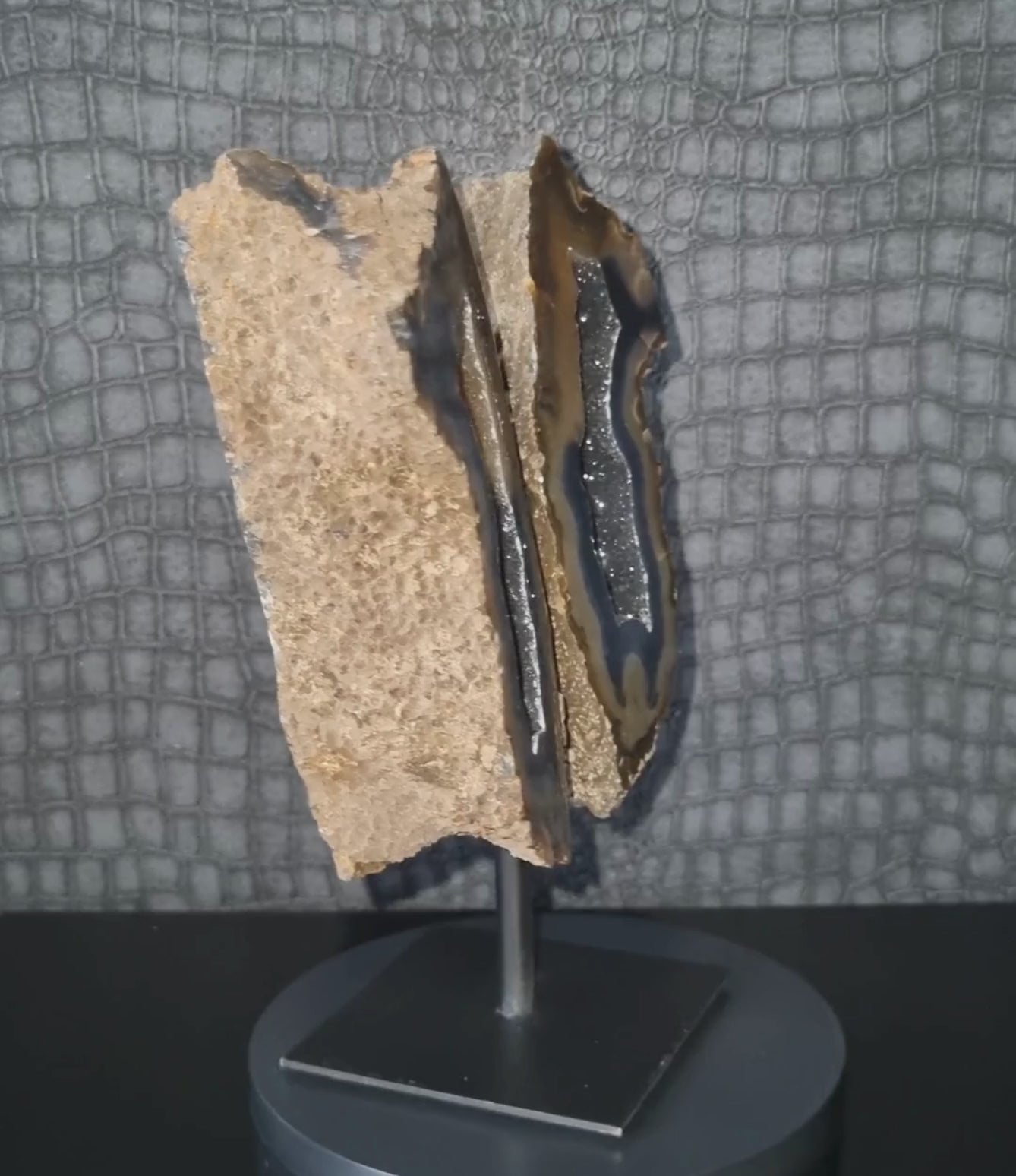 Verrijk je interieur met de rustgevende kracht van agaat op standaard. Deze prachtige woonaccessoires van natuursteen brengen balans en bescherming in je ruimte. Agaat staat bekend om zijn kalmerende en aardende werking, wat helpt om negatieve energie af te weren en innerlijke rust te bevorderen. Elke steen is uniek. Perfect om een persoonlijke en harmonieuze sfeer te creëren in jouw woonkamer, slaapkamer of kantoor.