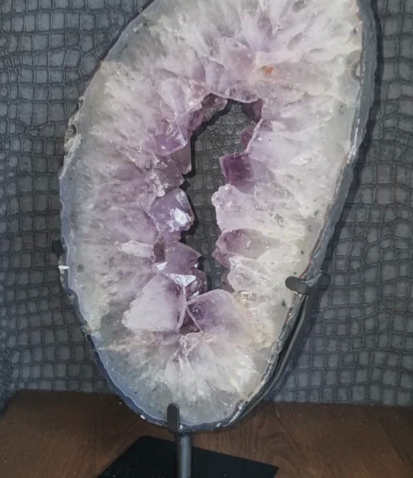 Dit spectaculaire amethist portaal van maar liefst 5 kilo is een indrukwekkend krachtstuk dat direct de aandacht trekt. De diepe paarse kristallen vormen een natuurlijke doorgang vol rust, bescherming en intuïtieve energie.